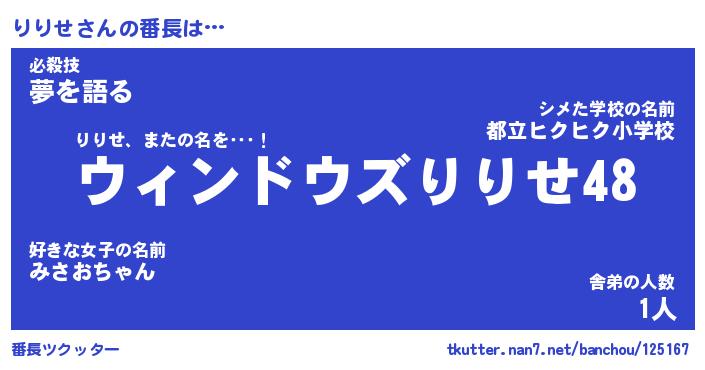 | 意味不明あだ名 | 『ペロリンりりせ』『りりせフォーエバー』 |