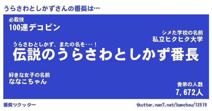 | ヒーロー風カッコイイあだ名 | 『スーパーウラサワトシカズ』 |