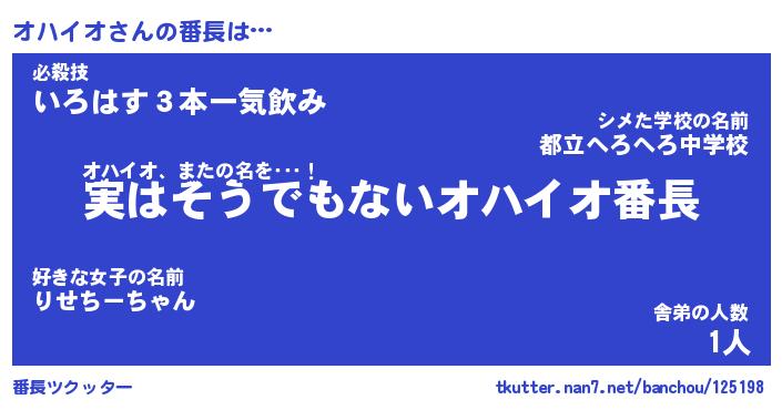 | ピコ太郎風あだ名 | 『オコ三郎』『ピオ史郎』『オハ四郎』 |