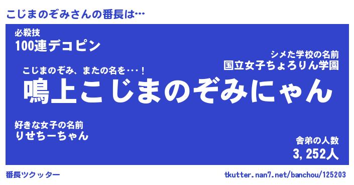 | 意味不明あだ名 | 『ペロリンこじまのぞみ』 |