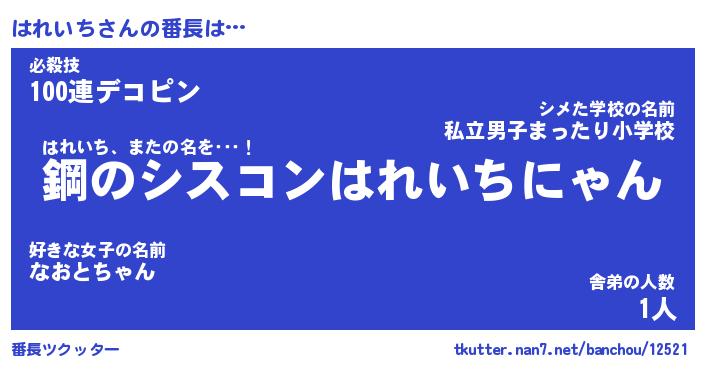 | 意味不明あだ名 | 『ペロリンはれいち』『永久保存はれいち』 |