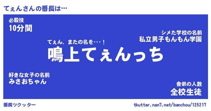 | 肩書あだ名 | 『てぇん店長』『てぇん国家主席』 |