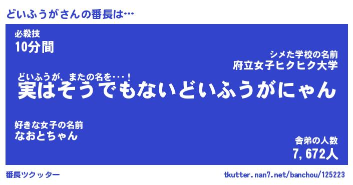 | 肩書あだ名 | 『どいふうが社長』『どいふうが大統領』 |