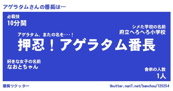 | ヒーロー風カッコイイあだ名 | 『スーパーアゲラタム』『黄金騎士アゲ』 |