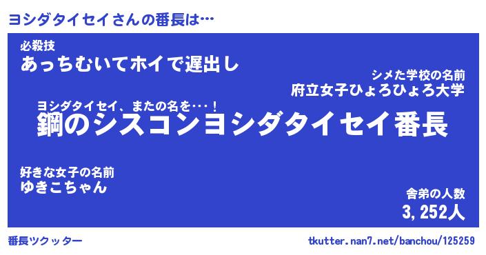 | ポケモン風あだ名 | 『ヨシチュウ』『ヨシダダネ』 |