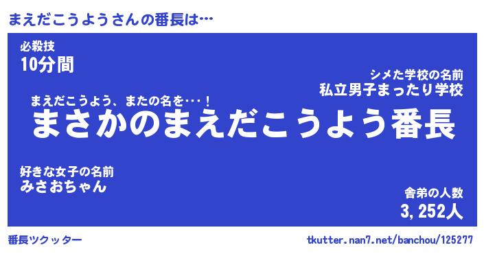 | 2回繰り返すあだ名 | 『まえまえ』『ままええ』『ぷりぷり』 |