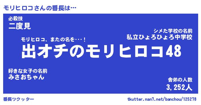 | 伝説のあだ名 | 『伝説のスナイパーモリヒロコ』 |