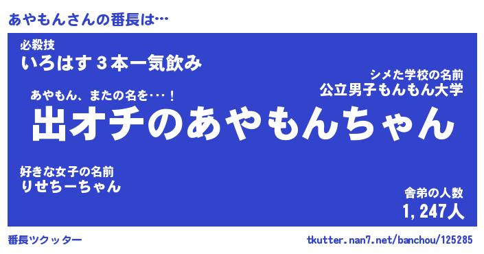 | 肩書あだ名 | 『あやもん社長令嬢』『あやもん大統領』 |