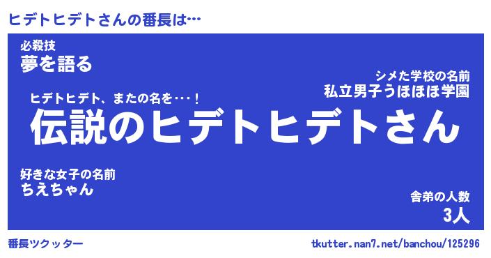 | 肩書あだ名 | 『ヒデトヒデトCEO』『ヒデトヒデト班長』 |