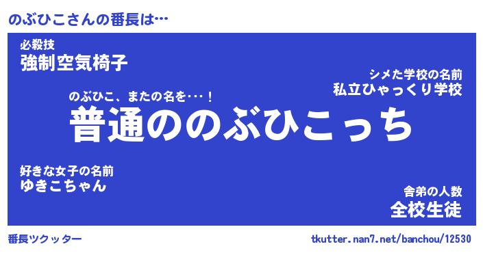 | 肩書あだ名 | 『のぶひこ御曹司』『のぶひこ国家主席』 |