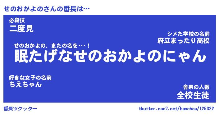 | 2回繰り返すあだ名 | 『せのせの』『せせのの』『うねうね』 |