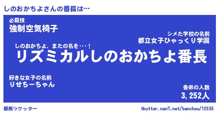 | 伝説のあだ名 | 『伝説のスナイパーしのおかちよ』 |