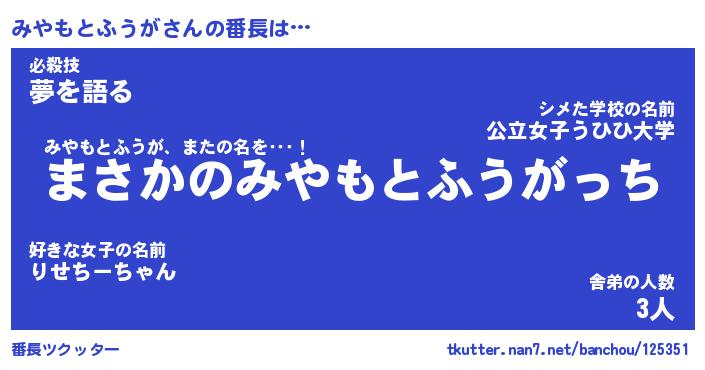 | 肩書あだ名 | 『みやもとふうが御曹司』 |