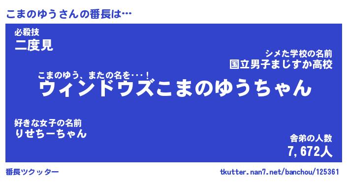 | ヒーロー風カッコイイあだ名 | 『スーパーコマノユウ』『炎刃騎士コマ』 |