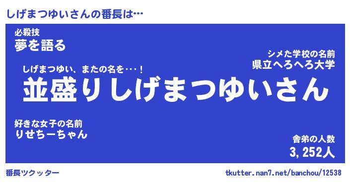 | ピコ太郎風あだ名 | 『シコ四郎』『ピシ史郎』『シゲ十郎』 |