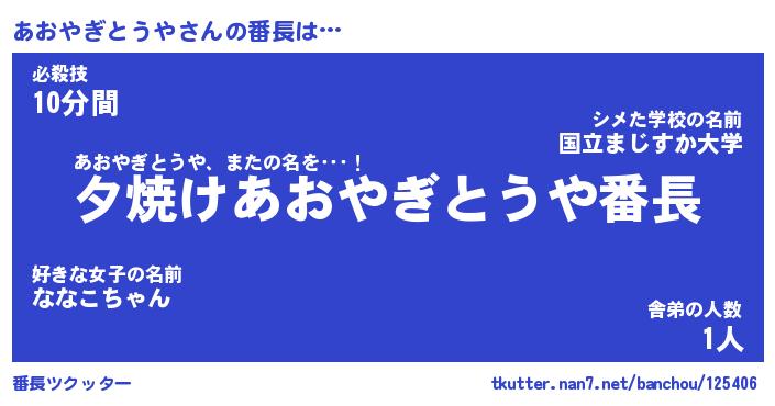 | ヒーロー風カッコイイあだ名 | 『スーパーアオヤギトウヤ』 |