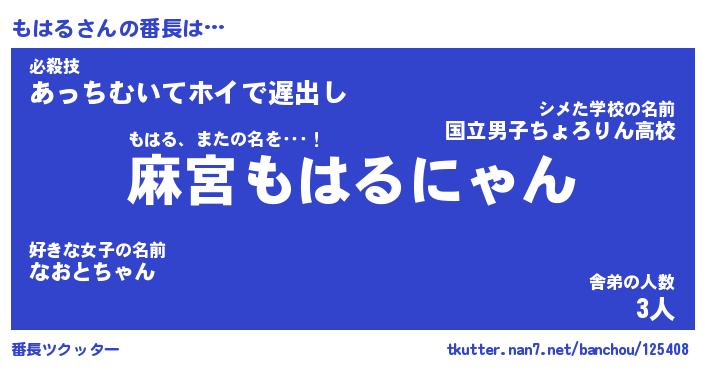 | 意味不明あだ名 | 『ペロリンもはる』『もはるフォーエバー』 |