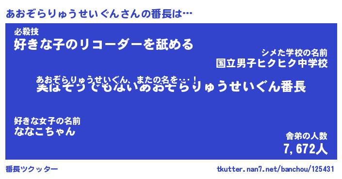 | 肩書あだ名 | 『あおぞらりゅうせいぐん店長』 |
