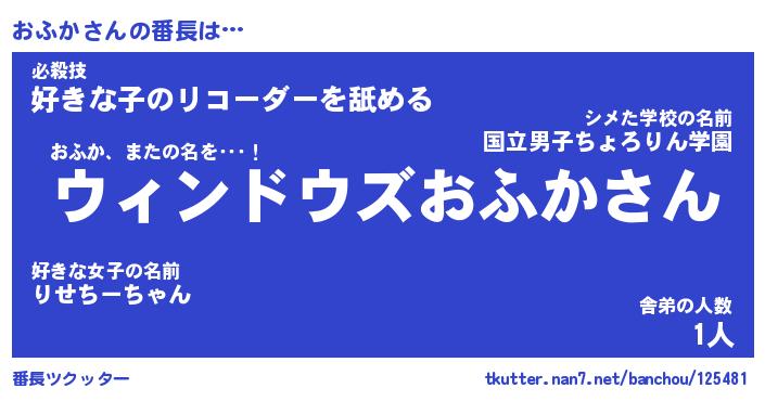 | 肩書あだ名 | 『おふか社長』『おふか国家主席』 |