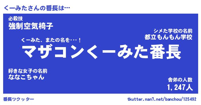 | ポケモン風あだ名 | 『クーチュウ』『クーミダネ』 |