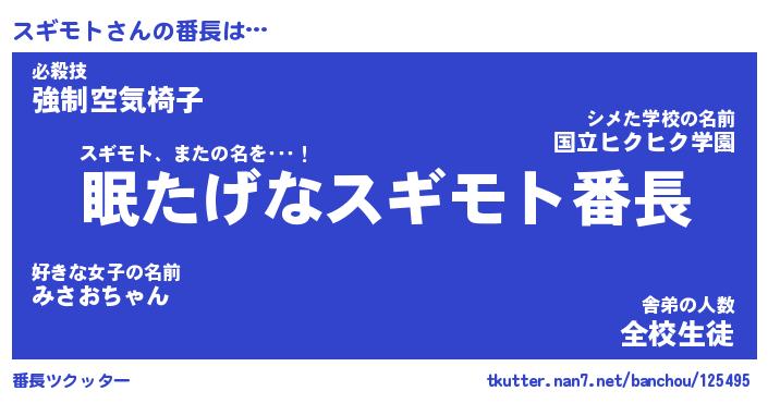 | ヒーロー風カッコイイあだ名 | 『スーパースギモト』『暗黒騎士スギ』 |