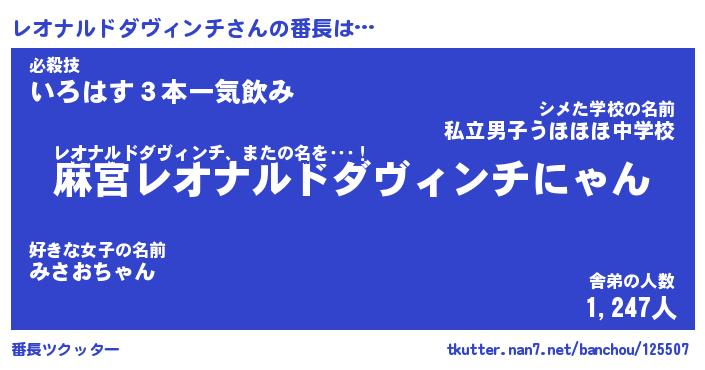 | 意味不明あだ名 | 『ペロリンレオナルドダヴィンチ』 |