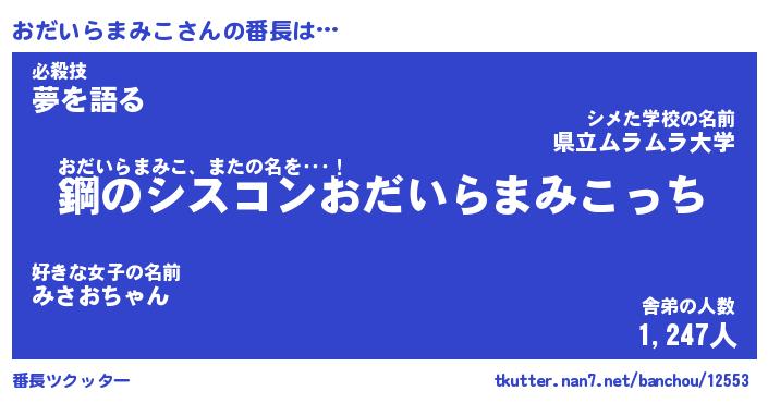 | 意味不明あだ名 | 『ペロリンおだいらまみこ』 |