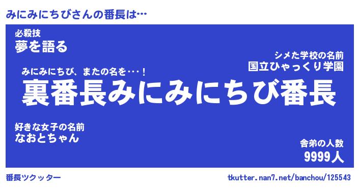 | ヒーロー風カッコイイあだ名 | 『スーパーミニミニチビ』『天弓騎士ミニ』 |