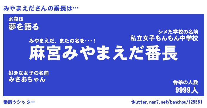 | 肩書あだ名 | 『みやまえだ御曹司』『みやまえだ大統領』 |