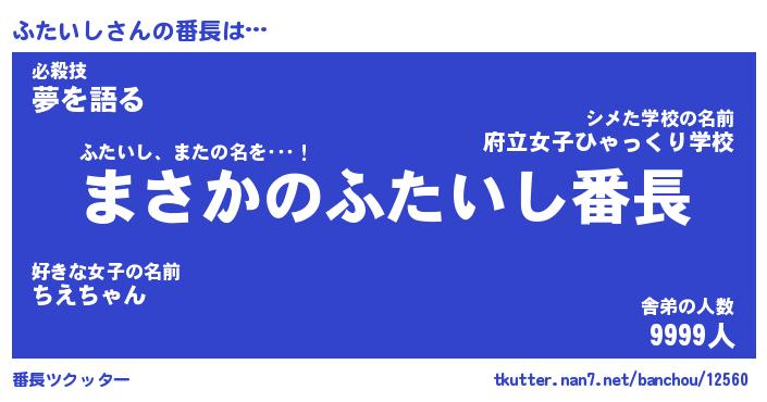 | ヒーロー風カッコイイあだ名 | 『スーパーフタイシ』『天弓騎士フタ』 |