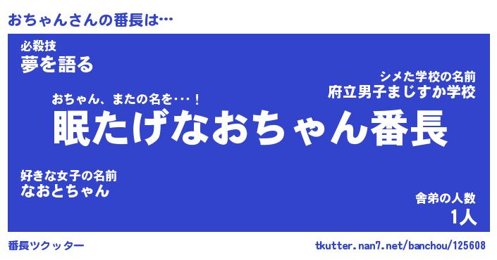 | 意味不明あだ名 | 『ペロリンおちゃん』『永久保存おちゃん』 |
