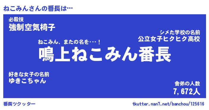 | 意味不明あだ名 | 『ペロリンねこみん』『永久保存ねこみん』 |