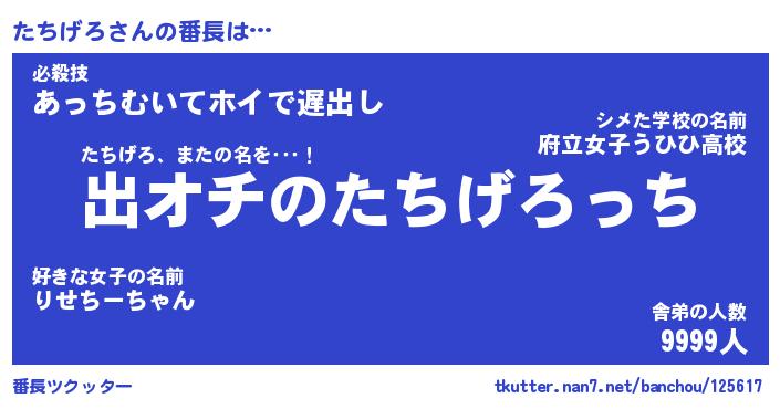 | ヒーロー風カッコイイあだ名 | 『スーパータチゲロ』『天弓騎士タチ』 |
