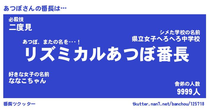 | ヒーロー風カッコイイあだ名 | 『スーパーアツボ』『ウルトラあつぼマン』 |