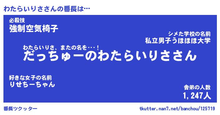 | 伝説のあだ名 | 『伝説のスナイパーわたらいりさ』 |