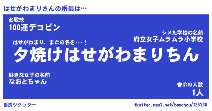 | ポケモン風あだ名 | 『ハセチュウ』『ハセガダネ』 |