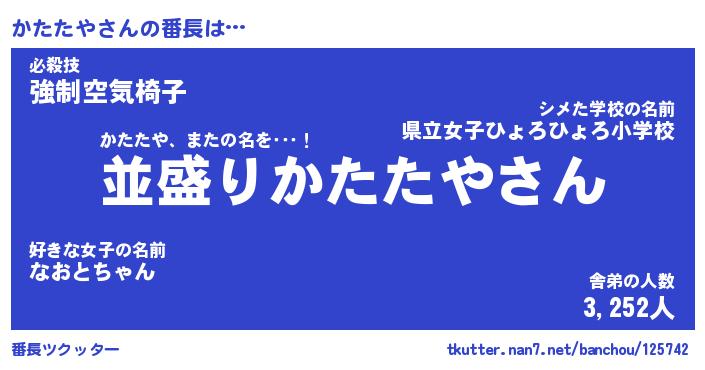 | 肩書あだ名 | 『かたたや店長』『かたたや大統領』 |