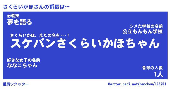 | ヒーロー風カッコイイあだ名 | 『スーパーサクライカホ』『黄金騎士サク』 |