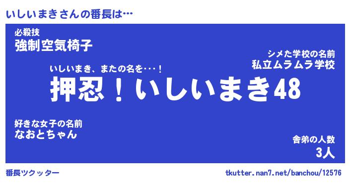 | ファンタジー風あだ名 | 『イシフェル』『エターナルイシイマキー』 |