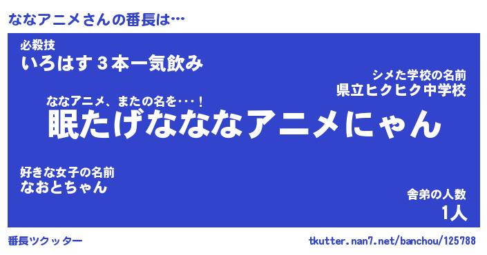 | 肩書あだ名 | 『ななアニメ御曹司』『ななアニメ大統領』 |