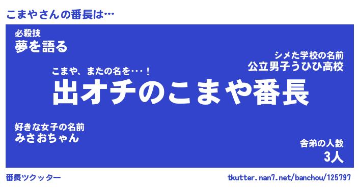 | ヒーロー風カッコイイあだ名 | 『スーパーコマヤ』『ウルトラこまやマン』 |