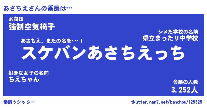 | 意味不明あだ名 | 『ペロリンあさちえ』『永久保存あさちえ』 |