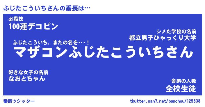 | ピコ太郎風あだ名 | 『フコ四郎』『ピフ三郎』『フジ四郎』 |