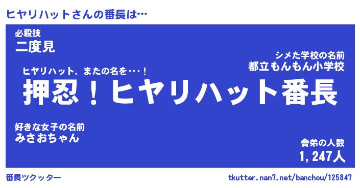 | ピコ太郎風あだ名 | 『ヒコ一郎』『ピヒ八郎』『ヒヤ六郎』 |
