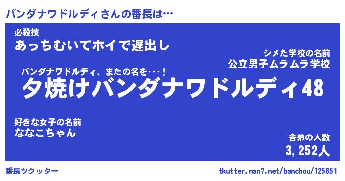 | ポケモン風あだ名 | 『バンチュウ』『バンダダネ』 |