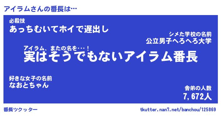 | 恥ずかしいあだ名 | 『プリティーアイラム』『アイっちょ』 |