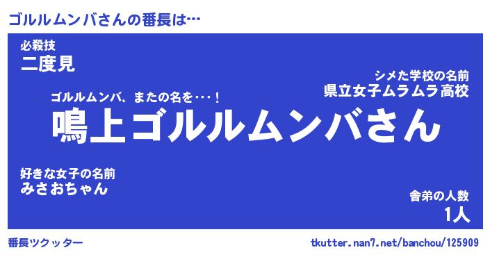 | 伝説のあだ名 | 『封印されしスナイパーゴルルムンバ』 |
