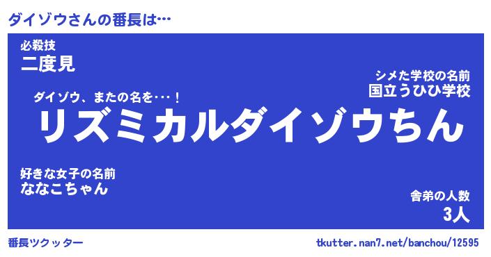 意味不明あだ名 | 『ペロリンダイゾウ』『永久保存ダイゾウ』 |
