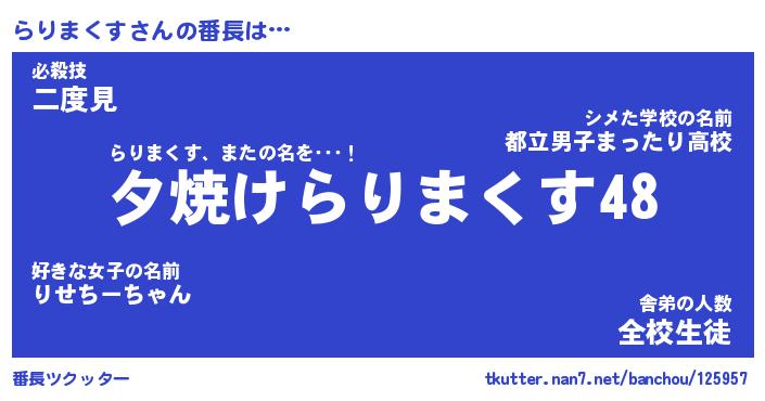 | 伝説のあだ名 | 『封印されしスナイパーらりまくす』 |