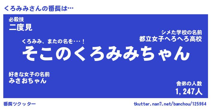 | 意味不明あだ名 | 『ペロリンくろみみ』『永久保存くろみみ』 |
